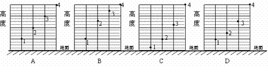 6.如图所示,四个小球在离地面不同高度处,同时由静止释放,不计空气阻力,从某一时刻起,每隔相等的时间间隔小球依次碰到地面。则刚刚开始运动时各小球相对地面的位置可能是 [ ]