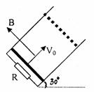 12.质量为m的金属杆ab,以一定的初速度v0从一光滑平行金属导轨底端向上滑行,导轨平面与水平面成30°角,两导轨之间用一电阻R相连,如图,若有磁感应强度为B的匀强磁场垂直穿过导轨平面,导轨电阻不计,金属杆上行到某一高度后又返回下行,则上行与下行返回到底端的两个过程比较 ( )