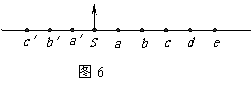 波源S在t=0时刻从平衡位置开始向上运动,形成向左右两侧传播的简谐横波。s、a、b、c、d、e和a′、b′、c′是沿波传播方向上的间距为1m的9个质点,t=0时刻均静止于平衡位置,如图6所示。已知波的传播速度大小为1m/s,当t=1s时质点s第一次到达最高点,当t=4s时质点d开始起振。则在t=4.6s这一时刻