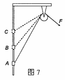 10.如图7所示,固定的光滑竖直杆上套着一个滑块,用轻绳系着滑块绕过光滑的定滑轮,以大小恒定的拉力F拉绳,使滑块从A点起由静止开始上升.若从A点上升至B点和从B点上升至C点的过程中拉力F做的功分别为W1、W2,滑块经B、C两点时的动能分别为EKB、EKc,图中AB=BC,则一定有