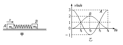 10.如图甲所示,一轻弹簧的两端与质量分别为m1和m2的两物块A、B相连接,并静止在光滑的水平面上。现使A瞬时获得水平向右的速度3m/s,以此刻为计时起点,两物块的速度随时间变化的规律如图乙所示,从图象信息可得: