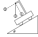 一个单摆悬挂在小车上,随小车沿斜面下滑。图中虚线①垂直于斜面,虚线②平行于斜面,虚线③是竖直方向。下列说法中正确的是: