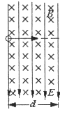 ( 14 分)如图所示,某一真空区域内充满匀强电场和匀强磁场,此区域的宽度 d = 8 cm , 电场强度为E,方向竖直向下,磁感应强度为 B ,方向垂直纸面向里,一电子以一定的速度沿水平方向射入此区域.若电场与磁场共存,电子穿越此区域时恰好不发生偏转:若射入时撤去磁场,电子穿越电场区域时,沿电场反方向偏移量 y=3.2 cm :若射入时撤去电场,电子穿越磁场区域时也发生了偏转.不计重力作用,求: ( l )电子射入时的初速度的表达式; ( 2 )电子比荷的表达式: ( 3 )画出电子穿越磁场区域时(撤去电场时)的轨迹并标出射出磁场时的偏转角 α ; ( 4 )申子穿越磁场区域后(撤去电场时)的偏转角 α .