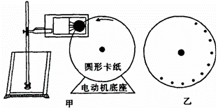 20.如图甲所示为测量电动机转动角速度的实验装置,半径不大的圆形卡纸固定在电动机转轴上,在电动机的带动下匀速转动。在圆形卡纸旁边垂直安装一个改装了的电火花计时器。