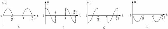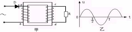 3.如图甲所示,在变压器的输入端串接上一只整流二极管D,在变压器输入端加上如图乙所示的交变电压u1=Um1sinωt,设t=0时刻为a“+”、b“-”,则副线圈输出的电压的波形(设c端电势高于d端电势时的电压为正)是下图中的( )