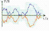 4、用计算机辅助实验系统做验证牛顿第三定律的实验,点击实验菜单中“力的相互作用”。把两个力探头的挂钩钩在一起,向相反方向拉动,观察显示器屏幕上出现的结果如图。观察分析两个力传感器的相互作用力随时间变化的曲线,可以得到以下实验结论:( )