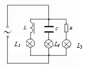 如图所示电路中,如果交流电的电压不变而频率降低,则三盏电灯的亮度变化情况是( )