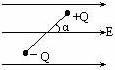 如图,绝缘杆长L,两端分别带有等量异号电荷,电量值为Q,处在场强为E的匀强电场中,杆与电场线夹角α=60°,若使杆沿顺时针转过60°(以杆上某一点为圆心转动),则下述正确的是 ( )