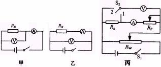 (1)要用伏安法测量Rx的电阻,已知电压表内阻约几kΩ,电流表内阻约1Ω ,若用图甲电路,Rx的测量值比真实值 填“偏大”或“偏小”),若Rx的阻值约为10Ω,应采用