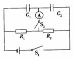 14.图示的电路中,电容C1=4.7×10-3F,C2=9.4×10-3F,电阻R1=5kΩ,R2=1 kΩ,电源电动势E=6V,内阻不计,最初电键S1、S2断开,电容器不带电。求: