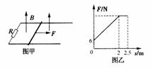 如图(甲)所示,一对平行光滑轨道放置在水平面上,两轨道相距l=1m,两轨道之间用R=2Ω的电阻连接,一质量m=0.5kg的导体杆与两轨道垂直,静止放在轨道上,杆及轨道的电阻均可忽略不计,整个装置处于磁感应强度B=2T的匀强磁场中,磁场方向垂直轨道平面向上,现用水平拉力沿轨道方向拉导体杆,拉力F与导体杆运动的位移s间的关系如图(乙)所示,当拉力达到最大时,导体杆开始做匀速运动,当位移s=2.5m时导体杆达到运动过程中的最大速度8m/s撤去拉力,导体杆又滑行了s′=2m停下,求:拉力F作用过程中,电阻R上产生的焦耳热。