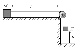 (2)设M=2kg , l=2.5m,h=0.5m, μ=0.2,m物块着地后立即停止运动,要M物块不撞到定滑轮,m质量应该满足什么条件?