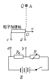 (2)真空中有一固定于A点的电量Q(Q>0)点电荷,另有一电子枪,如图中上部分,可用同一加速电压加速静止粒子,现有两种带负电的粒子p1、p2,经该枪加速后从O点进入Q场区域,枪口射出方向垂直AO连线。AO=r0,试证明若加速电压U满足一定的条件粒子p1、p2进入Q场区域后都能做匀速圆周运动。(不考虑粒子的重力)