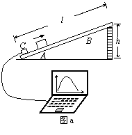 如图(a),质量为M的滑块A放在气垫导轨B上,C为位移传感器,它能将滑块A到传感器C的距离数据实时传送到计算机上,经计算机处理后在屏幕上显示滑块A的位移-时间(s-t)图象和速率-时间(v-t)图象。整个装置置于高度可调节的斜面上,斜面的长度为了L、高度为h。(取重力加速度g=9.8m/s2,结果可保留一位有效数字)