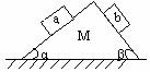 它的顶角为90°,两底角为α和β;a、b为两个位于斜面上质量均为m的小木块。已知所有接触面都是光滑的。现发现a、b沿斜面下滑,而楔形木块静止不动,这时楔形木块对水平桌面的压力等于