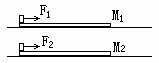 11.在光滑的水平面上,放有长度相同,质量为M1和M2的两木板,在其左端放有两小物体,两物体的质量相等,两物体与木板的动摩擦因数相等,现用水平恒力F1和F2由静止拉动物体,分离时两木板的速度分别为v1、v2,下列说法正确的是