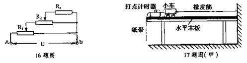 16.如图所示的电路,Rx为电阻500Ω的负载,R1、R2为两个用于调节负载电压的滑动变阻器,已知AB间电压为12V,Rx的工作电压为8V,两个滑动变阻器R1、R2的最大阻值分别为20Ω和200Ω,则: 的作用是粗调, 的作用是微调。