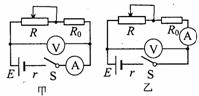 为测定一节蓄电池的电动势和内阻(内阻约为0.5Ω),实验可能采用的电路图如图甲、乙所示。为防止调节滑动变阻器时造成短路,电路中连接了一个保护电阻R0,除蓄电池、开关、导线外,可供使用的实验器材还有: