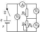 在如图所示电路中,闭合电键S,当滑动变阻器的滑动触头P向下滑动时,四个理想电表的示数都发生变化,电表的示数分别用I、U1、U2和U3表示,电表示数变化量的大小分别用∆I、∆U1、∆U2和∆U3表示,下列比值错误的是 ( )