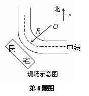 6.中央电视台《今日说法》栏目最近报道了一起发生在湖南长沙某区湘府路上的离奇交通事故.家住公路拐弯处的张先生和李先生家在三个月内连续遭遇了七次大卡车侧翻在自家门口的场面,第八次有辆卡车冲撞进李先生家,造成三死一伤和房屋严重损毁的血腥惨案.经公安部门和交通部门协力调查,画出的现场示意图如图所示.交警根据图示作出以下判断,你认为正确的是 ( )