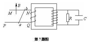 7.如图所示,MN和PQ为两根足够长的水平光滑金属导轨,导轨电阻不计,变压器为理想变压器,现在水平导轨部分加一竖直向上的匀强磁场,金属棒ab与导轨电接触良好,则以下说法正确的是 ( )