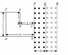 如图所示,在PQ、QR区域中存在着磁感应强度大小相等、方向相反的匀强磁场,磁场方向均垂直于纸面。一导线框abcdefa位于纸面内,框的邻边都互相垂直,bc边与磁场的边界P重合。导线框与磁场区域的尺寸如图所示。从t=0时刻开始,线框匀速很长两个磁场区域,以a→b→c→d→e→f为线框中的电动势