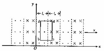 19.t=0时,磁场在xOy平面内的分布如题23图所示。其磁感应强度的大小均为B0,方向垂直于xOy平面,相邻磁场区域的磁场方向相反。每个同向磁场区域的宽度均为l0。整个磁场以速度v沿x轴正方向匀速运动。