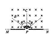 4.如图所示,在屏MN的上方有磁感应强度为B的匀强磁场,磁场的方向垂直纸面向里,P为屏上的一个小孔,PC与MN垂直. 现有一群质量为m、电荷量为-q的粒子(不计重力),以相同的速率v从P处沿垂直于磁场的方向射入磁场区域,粒子入射方向在与磁场B垂直的平面内,且散开在与PC的夹角为θ的范围内,则在屏MN上被粒子打中的区域的长度为 ( )