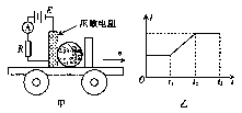 6.压敏电阻的阻值随所受压力的增大而减小,有同学利用压敏电阻设计了判断小车运动状态的装置,其结构原理示意图如图甲所示,将压敏电阻和一块挡板固定在绝缘小车上,中间放置一个绝缘重球. 在小车向右做直线运动的过程中,电流表的示数如图乙所示,则下列判断正确的是 ( )