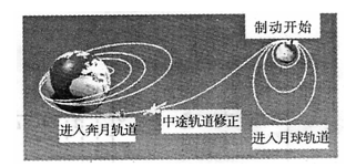 在2007年11月5日,嫦娥一号迎来奔月旅程的最关键时刻--实施首次“刹车”减速. 在接近月球时,嫦娥一号要利用自身的火箭发动机点火减速,以被月球引力俘获进入绕月轨道. 这次减速只有一次机会,如果不能减速到一定程度,嫦娥一号将一去不回头离开月球和地球,漫游在更加遥远的太空;如果过分减速,嫦娥一号则可能直接落到月球表面. 该报道的图示如上. 下列说法正确的是 ( )