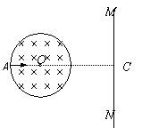 如图所示,真空中有一半径为R的圆形磁场区域,圆心为O,磁场的方向垂直纸面向内,磁感强度为B,距离O为2R处有一光屏MN,MN垂直于纸面放置,AO过半径垂直于屏,延长线交于C.一个带负电粒子以初速度v0沿AC方向进入圆形磁场区域,最后打在屏上D点,DC相距2