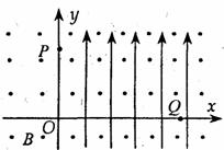 (1)粒子在坐标原点O的速度υ=? (2)粒子从P点到Q点时的时间?