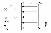 14.如图所示,坐标平面的第Ⅰ象限内存在大小为E、方向水平向左的匀强电场,第Ⅱ象限内存在磁感应强度大小为B、方向垂直纸面向里的匀强磁场。足够长的挡板MN垂直x轴放置且距原点O为d。一质量为m、带电量为-q的粒子(不计重力)若自距原点O为L的A点以大小为v0,方向沿y轴正方向的速度进入磁场,则粒子恰好到达O点而不进入电场。现该粒子仍从A点进入磁场,但初速度大小为2v0,为使粒子进入电场后能以垂直于挡板MN的速度打在挡板上,求:
