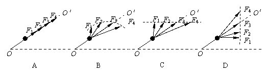 2.如右图所示,小车上固定着三角硬杆,杆的端点固定着一个质量为m的小球.当小车有水平向右的加速度且逐渐增大时,杆对小球的作用力的变化(用F1至F4变化表示)可能是下图中的(OO'沿杆方向) ( )