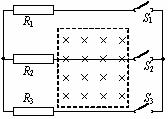 两金属棒和三根电阻丝如图连接,虚线框内存在均匀变化的匀强磁场,三根电阻丝的电阻大小之比R1:R2:R3=1:2:3,金属棒电阻不计。当S1、S2闭合,S3 断开时,闭合的回路中感应电流为I,当S2、S3闭合,S1 断开时,闭合的回路中感应电流为5I,当S1、S3闭合,S2 断开时,闭合的回路中感应电流是( )