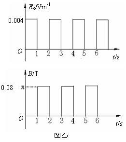 18.(17分)如图甲所示,在边界MN左侧存在斜方向的匀强电场E1,在MN的右侧有竖直向上、场强大小为E2=0.4N/C的匀强电场,还有垂直纸面向内的匀强磁场B(图甲中未画出)和水平向右的匀强电场E3(图甲中未画出),B和E3随时间变化的情况如图乙所示,P1P2为距MN边界2.295m的竖直墙壁,现有一带正电微粒质量为4×10-7kg,电量为1×10-5C,从左侧电场中距MN边界