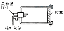 19.如图所示,厚壁容器的一端通过胶塞插进一只灵敏温度计