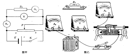 某物理课外兴趣小组的同学们为了测定该电压表的量程和内阻,设计了如图甲所示的电路图,已知定值电阻的阻值为R0。请您按要求完成以下问题。