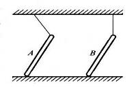 悬挂A杆的绳倾斜,悬挂B杆的绳恰好竖直,则关