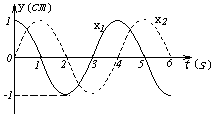 12.一列沿x轴正向传播的简谐波在x1=10 cm和x2=110 cm处的两质点的振动图线如右图所示,则质点振动的周期为_____s,这列简谐波的波长为_____ _cm.