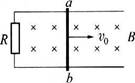 如右图所示,导体棒ab放在光滑的金属导轨上,磁感应强度B,导轨足够长,除了电阻R外,其他电阻不计。导体棒ab的质量为m,长为L,给ab棒一个水平向右的初速度v0,因感应电流作用,ab棒将减速运动,则电阻R消耗的最大电功率为________________,整个过程电阻R消耗的电能为________________.