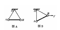 如右图所示,装置中OA、OB是两根轻绳,AB是轻杆,它们构成一个正三角形.在A、B两处分别固定质量均为m的小球,此装置悬挂在O点,开始时装置自然下垂(如图a).现对小球B施加一个水平力F,使装置静止在图b所示的位置,此时OA竖直.则在图a所示的状态下OB对小球B的作用力大小为________________,在图b所示的状态下OB对小球B的作用力大小为