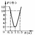 在保持两个分力大小不变的条件下,观察不同夹角θ时的合力大小,由数据得到如右图所示的合力F与两分力间夹角θ关系图.则下列说法正确的是 ( )