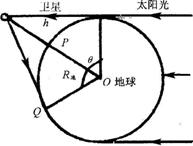 6-3、某颗同步卫星正下方的地球表面上有一观察者,用天文望远镜观察到被太阳光照射的该同步卫星。试问秋分这一天(太阳光直射赤道)从日落时起经过多长时间,观察者恰好看不见该卫星。已知地球半径为R,地球表面处重力加速度为g,地球自转周期为T。不考虑大气对光的折射