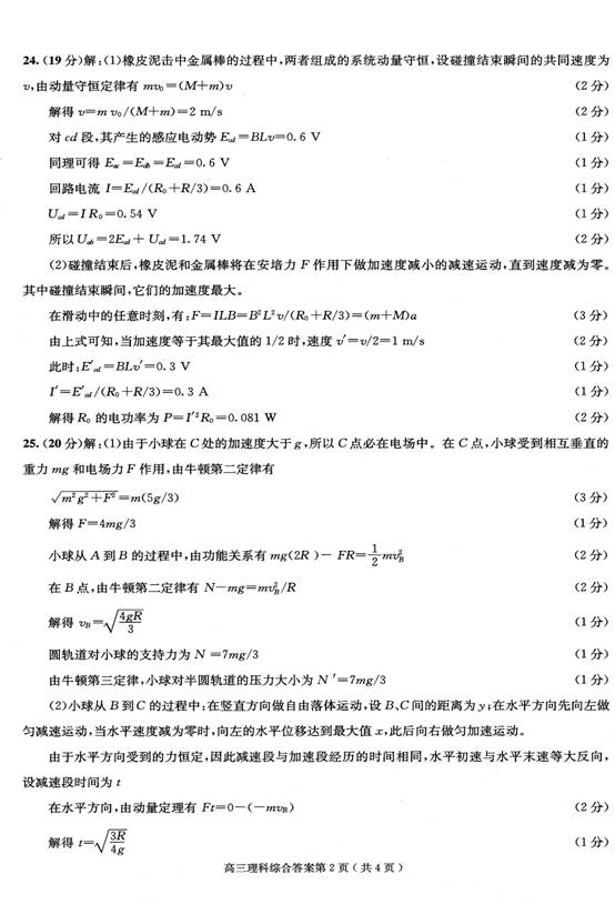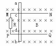 24.(20分)水平放置、足够长的光滑平行金属导轨 M N 和P Q相距L = 0.3m,接在MP之间的定值电阻R0=0.9Ω;质量M = 80G、电阻R=0.3Ω 的金属棒ab静止在金属轨上,ac、cdT和db三段的长度相同、电阻值相等,金属棒与导轨接触良好;导轨和连线的电阻不计,整个装置处在垂直于轨道平面向下的匀强磁场中,磁感应强度B= 1T ,俯视如图。现有一质量为 m=20g 的粘性橡皮泥,以向右的水平速度v0 = 10 m/s击中cd段的中央,并在极短时间内粘在棒上一起动动。
