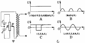 12.如图甲所示,两节同样的电池(内电阻不计)与滑线变阻器组成分压电路和理想变压器原线圈连接,通过改变滑动触头P的位置,可以在变压器副线圈两端得到图3-17乙中哪些电压?