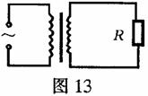 16、有一个阻值为R的电阻,若将它接在电压为20V的直流电源上时,消耗的电功率为P;若将它接在图13中的理想变压器的次级线圈两端时,消耗的电功率为P/2。已知变压器输入的是正弦交流电,其电压的最大值为200V,不计电阻阻值随温度的变化,求:(1)理想变压器次级线圈两端电压的有效值。(2)此变压器的原、副线圈的匝数之比。