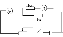 A、B短路,调A1满偏,此时电阻5欧,所以RX=![]()