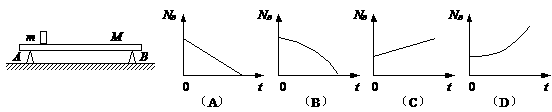 3.如图所示,质量为M、上表面光滑的平板水平安放在A、B两固定支座上。质量为m的小滑块以某一速度从木板的左端滑至右端。能正确反映滑行过程中,B支座所受压力NB随小滑块运动时间 t 变化规律的是 ( )