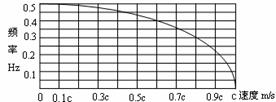 “世界物理年”决议的作出与爱因斯坦的相对论时空观有关。一个时钟,在它与观察者有不同相对速度情况下,时钟的频率是不同的,它们之间的关系如图。由此可知,当时钟和观察者的相对速度达到0.8C(C为光速)时,时钟的周期大约为______。